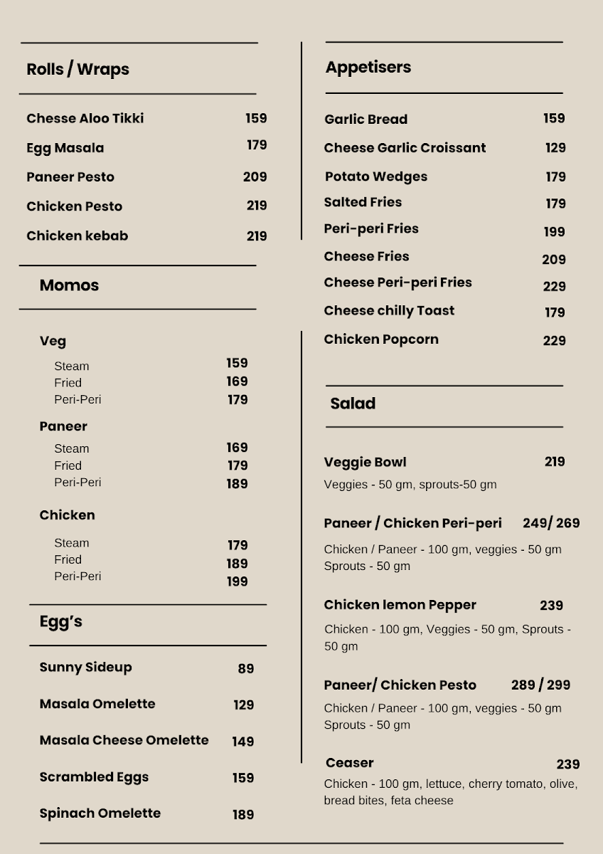 - Snacks: The menu features scrumptious burgers like the Aloo Tikki and Classic Veg Burger, ideal for a quick bite.